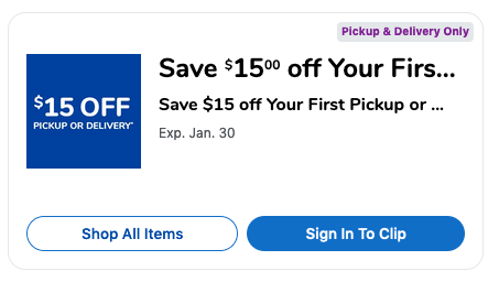 Use the $15 off $75 pickup or delivery eCoupon (exp 1/30)