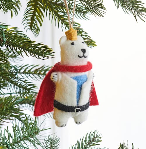 Get Pottery Barn Christmas Ornaments for as low as $2.39 after code (regularly $12.50)! The St. Jude Felt Superhero Bear Ornament even ships for free!