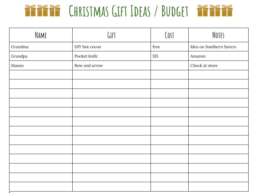 In case you missed the links above, I created a customizable spreadsheet and a printable Christmas gift ideas sheet that you can use to help you stay organized!