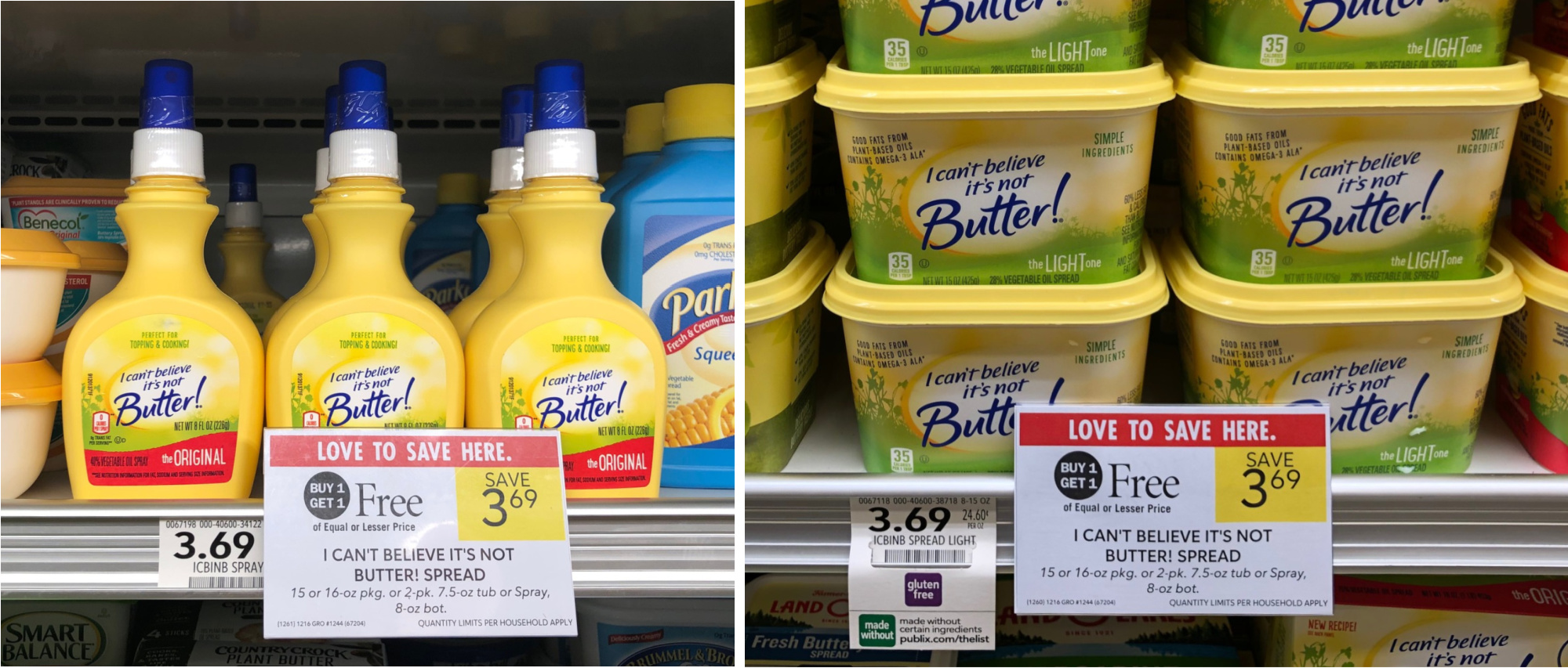 You get another chance to grab a deal on I Can’t Believe It’s Not Butter! products this week when you shop. With the BOGO sale and coupon combo you can get tubs for as little as $1.35 each at Publix.