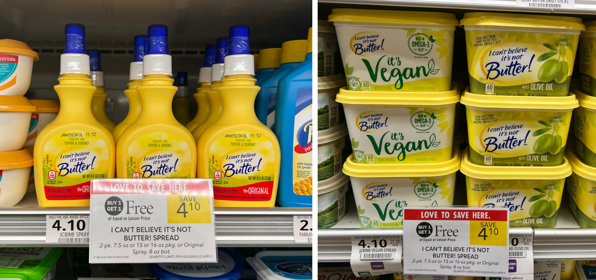 I Can’t Believe It’s Not Butter! Spread, 2-pk, 7.5 oz, or 15 or 16 oz, or Spray, 8 oz bot, BOGO $4.10