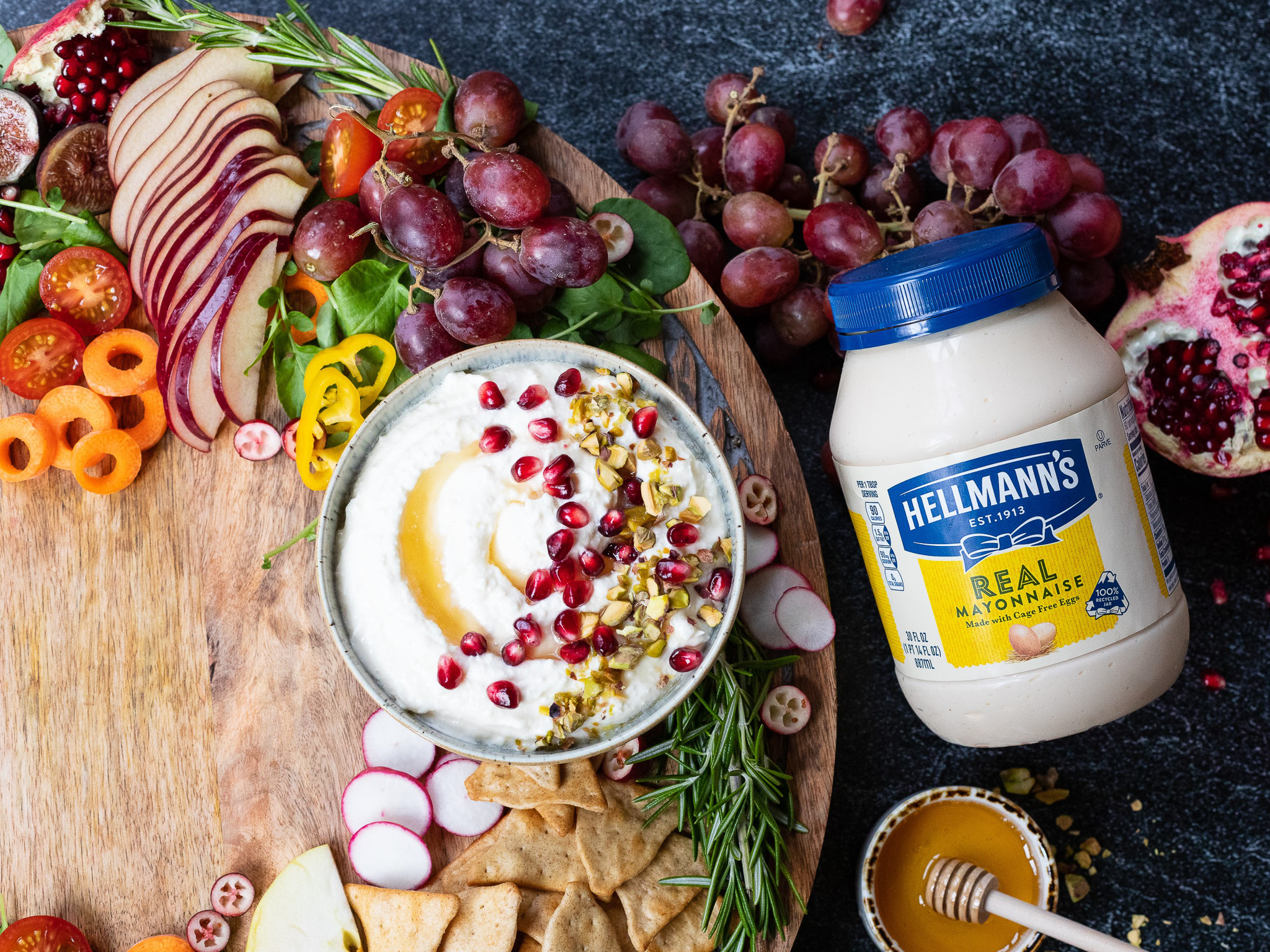 The base recipe requires just FIVE ingredients. Feta, Greek yogurt, Hellmann’s Mayonnaise, garlic and lemon juice is all that you need for an amazing dip that’s ready in under 5 minutes. With only a few ingredients, you know this one is also an economical option for your holiday spread too!