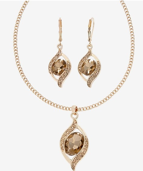 Monet Gold-Tone Brown Crystal Ornament Necklace and Earring Set – $8.99 (reg. $26)