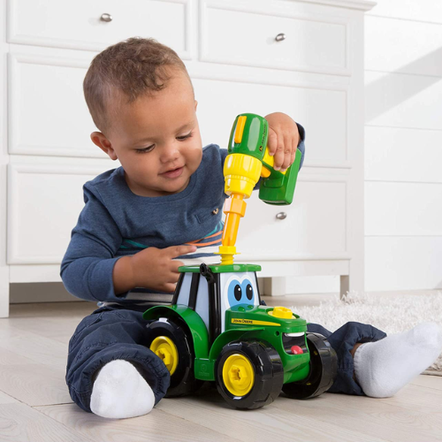 - EASY TO ASSEMBLE: Comes with a battery powered drill to take apart the chunky parts of the tractor toy and to put them together again