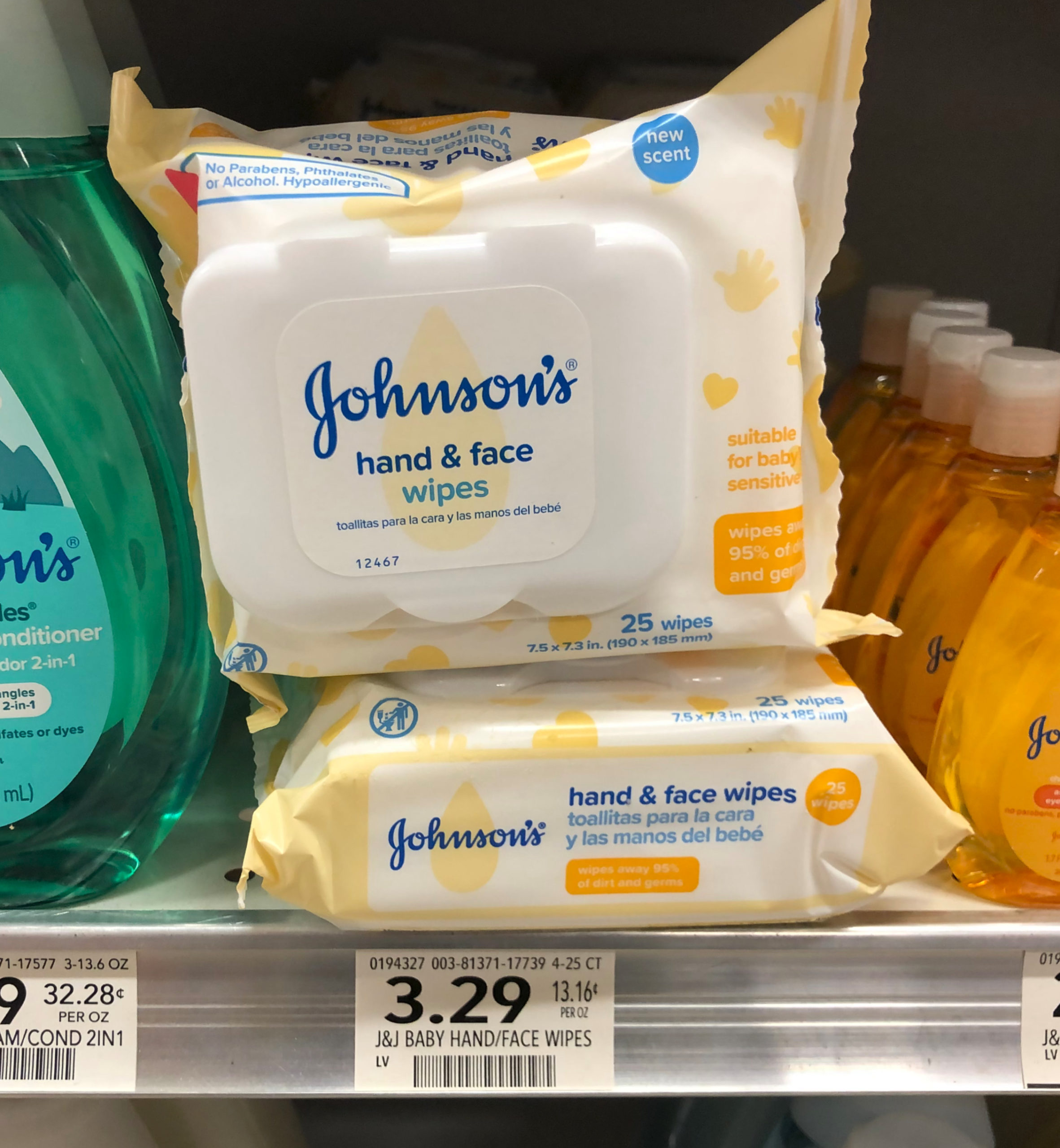 Johnson’s Hand & Face Wipes, 25 ct, $3.29