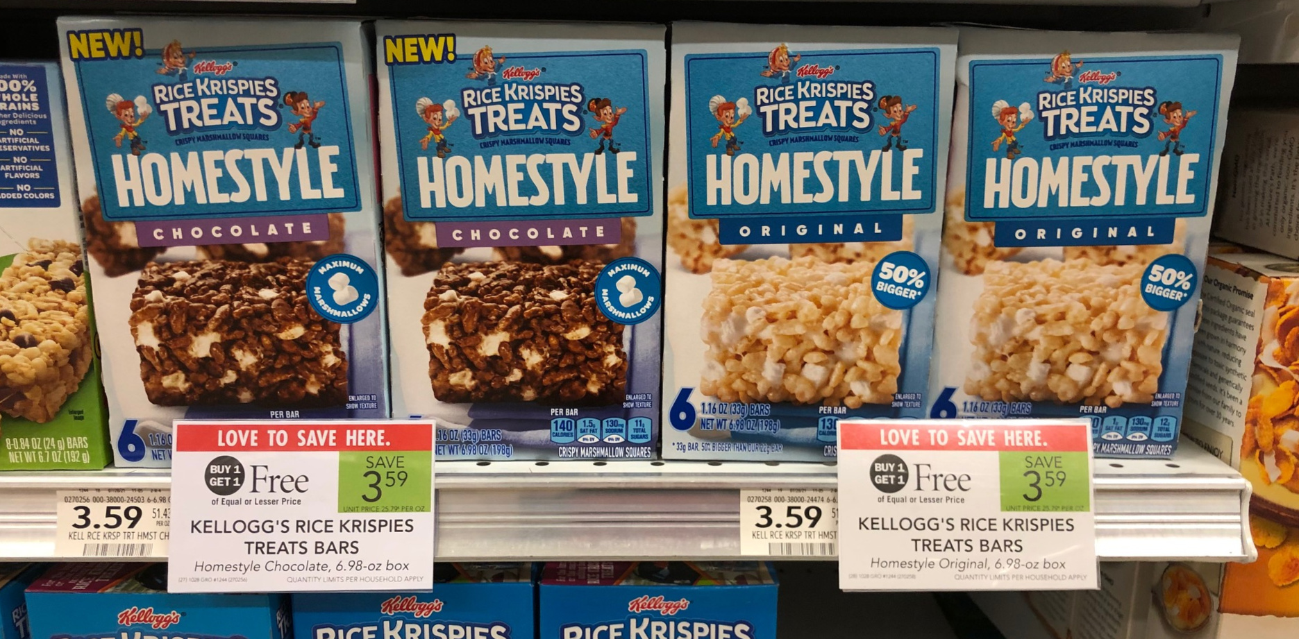 Kellogg’s Rice Krispies Treats Bars, Homestyle, Chocolate or Original, 6.98 oz box, BOGO $3.59