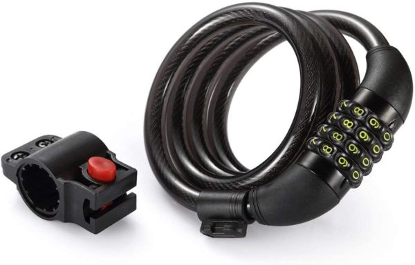 - Resettable combination bike lock: Smart 4-digit resettable coiling cable lock, it is easy to set your own personalized number combination.