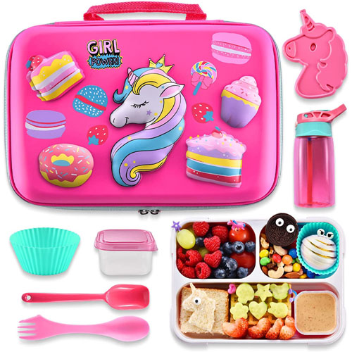 - Travel Friendly: kids lunch box set includes a 3-compartment lunchbox, an Ice Pack, Water Bottle, silicon cap, salad container, fork, and spoon. The lunch bag features a quality light-weight design with a comfortable grip handle that makes it easy to carry around. It is everything your kid needs for picnics, sleepovers, road trips, and more.