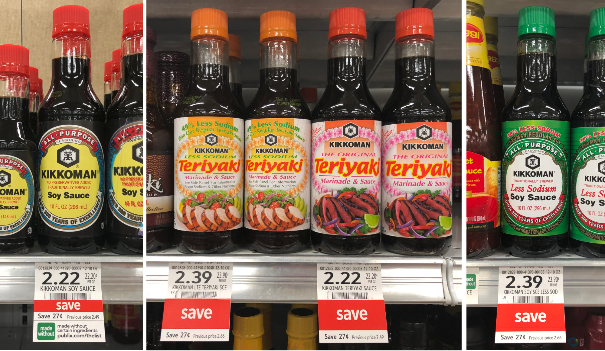 Need soy or teriyaki sauce? Grab your Kikkoman’s coupons and get the bottles for as little as $1.17 at Publix.
