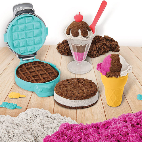 - Mix, mold, and create your own ice cream creations – all out of scented Kinetic Sand! With the Ice Cream Treats Playset, make your own colorful sundaes, waffles, ice cream cookie sandwiches, and ice cream cones! Plus, with the Ice Cream Cone Containers (each sold separately), you can create even more Kinetic Sand ice cream treats!