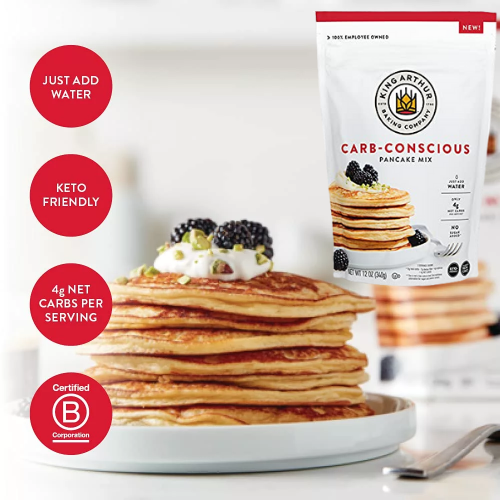 - King Arthur Carb-Conscious Pancake Mix is keto-friendly, Sourced Non-GMO and certified Kosher