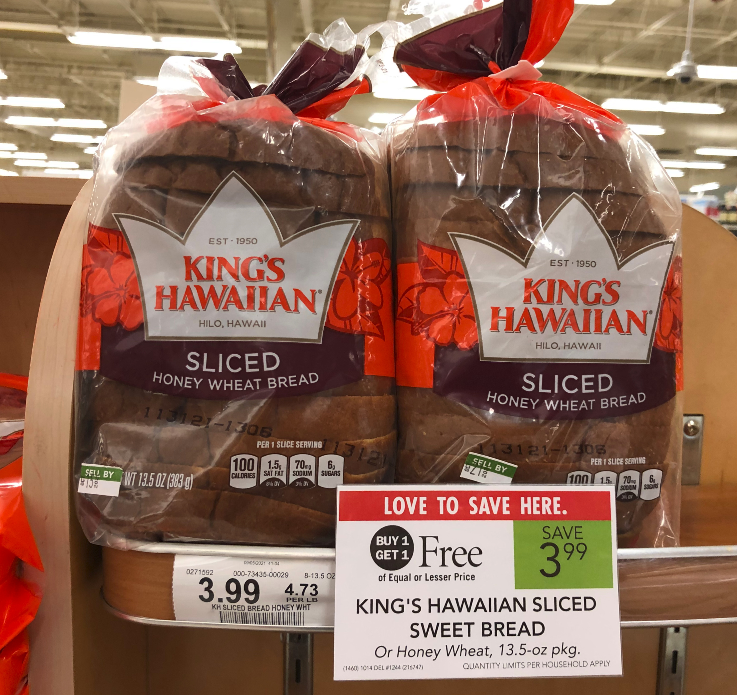 King’s Hawaiian Sliced Sweet Bread or Honey Wheat, 13.5 oz, BOGO $3.99