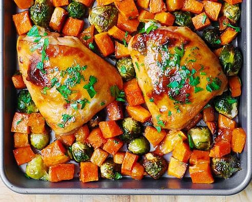 Sheet Pan Maple-Dijon Chicken with Butternut Squash and Brussels Sprouts