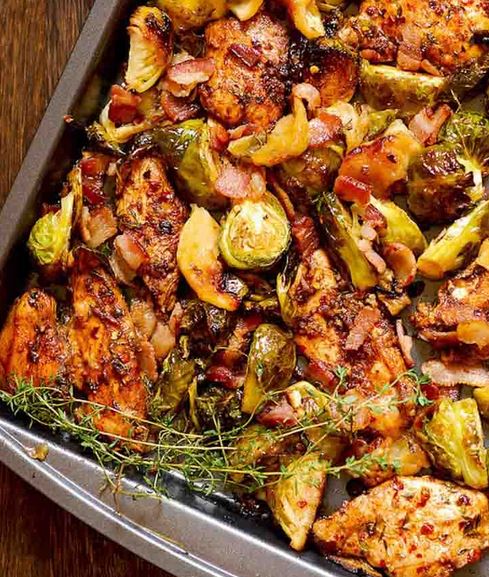 Sheet Pan Chicken with Brussels Sprouts & Bacon