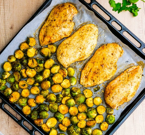 Sheet Pan Roasted Brussels Sprouts & Chicken