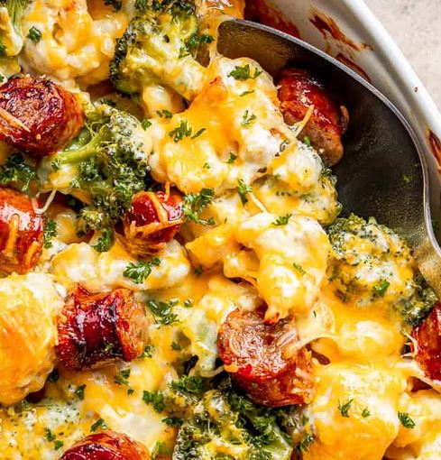 Cheesy Broccoli, Sausage & Cauliflower Casserole