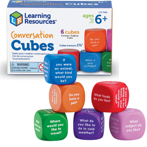 Hop over to Amazon and get a deal on Learning Toys. Just an idea, you can get this Conversation Cubes, 6 Pieces for only $8.99 (Reg. $14.99). Spark discussions and personal responses. 6 Cubes features 36 engaging questions to build speaking and listening skills. Also supports fluency in ELLs and students in speech programs. Includes activity guide.