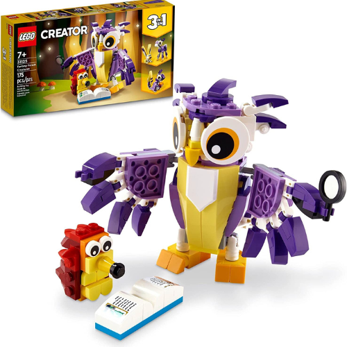 - 3 animal scenes in 1 set – Children can create stories with this LEGO Creator 3-in-1 Fantasy Forest Creatures (31125) set with an owl and a hedgehog, a young deer and a rabbit, and a squirrel