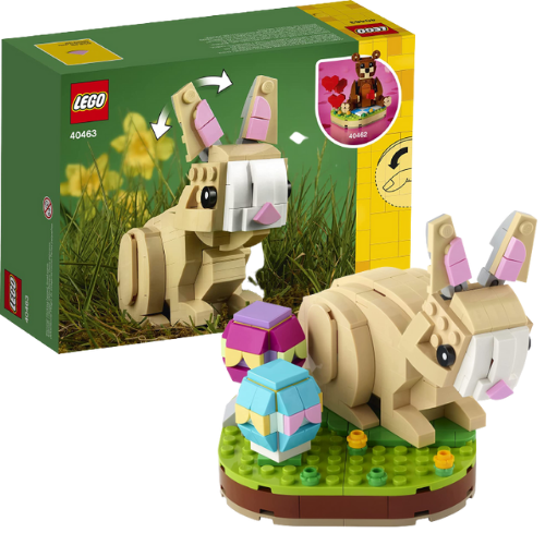 - This buildable LEGO Easter Bunny (40463) comes with a posable head and ears, plus a meadow setting with 2 customizable Easter eggs