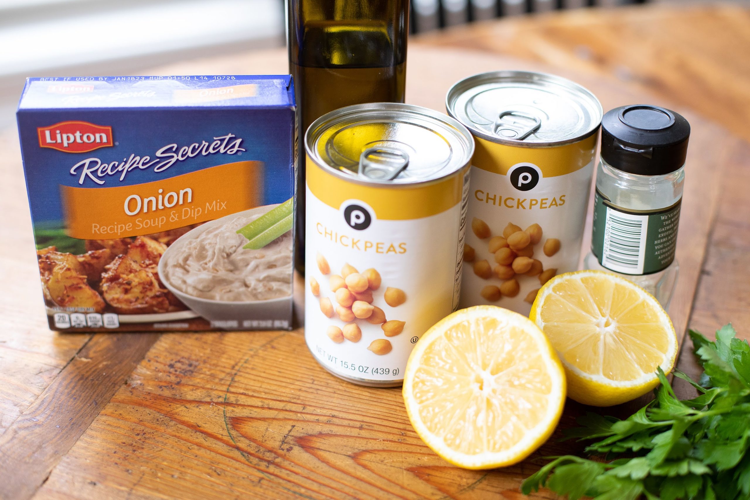 - 2 cans (15.5 oz. ea.) chick peas or garbanzos or garbanzos beans