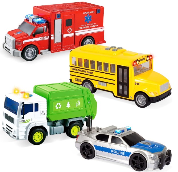Set of 4 light & sound emergency vechicle set — $27.09 shipped from Amazon.