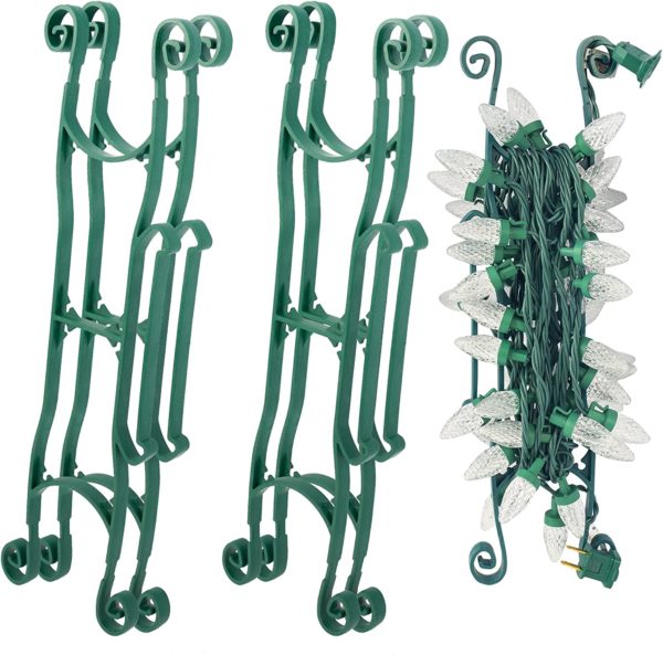 This package contains 4 pieces lights and cord storage holder. Each holder holds lights and cords up to 100 FT. This helps you keep string lights more organized. Each holder is made of high quality plastic and has a strong handle. Use the coupon code H9Y3FENR to drop the price.