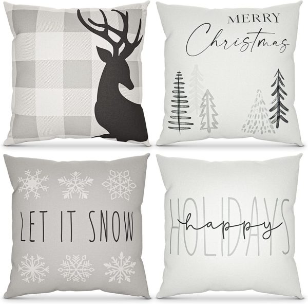 These simple but beautiful throw pillow covers are printed in shades of grey, black, and white, and come in 4 designs: “Let it Snow” with snowflake prints, “Happy Holidays” in two different fonts, “Merry Christmas: with tree prints, and a plaid cover with a silhouette of a deer. Clip the 65% coupon to drop the price.