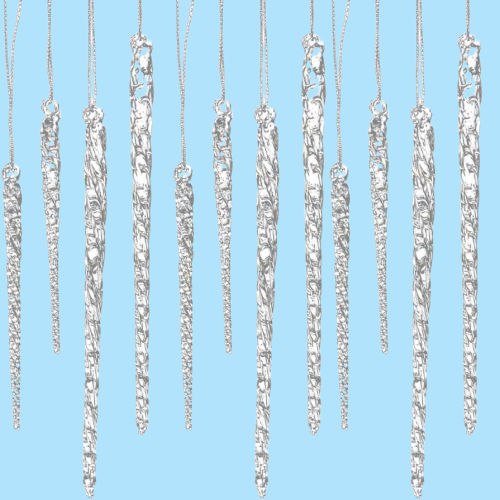 This set includes 12 pieces 3.5″ icicles and 12 pieces 5.5″ icicles. These are made of glass and highly detailed.