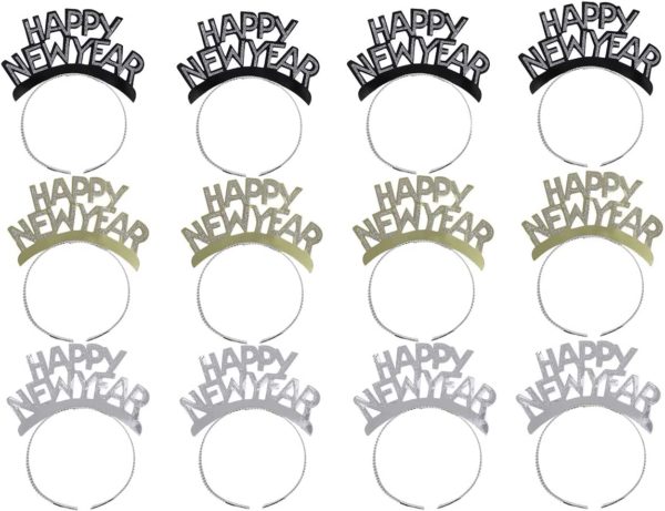 12 Pack HAPPY NEW YEAR Headband Tiara $11.99 – FAB Ratings! $1 each! 4 each of black, silver, and gold