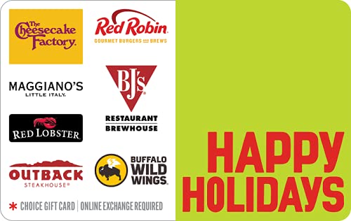 Your favorite people can use this card to dine at, or buy food from BJ’s Restaurant & Brewhouse, Buffalo Wild Wings, Maggiano’s, Outback Steakhouse, Red Lobster, Red Robin, and The Cheesecake Factory. Plus, for a limited time while supplies last, you will receive $7.50 in bounceback credits within 3 days when you spend $50+ on select Choice Holiday Gift Cards. Enter the code OCHOLIDAY22 at checkout. 1 per customer. Offered by Amazon.com