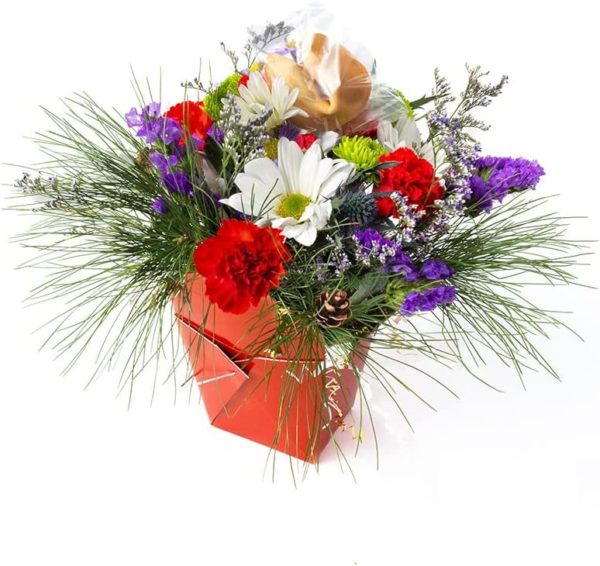 These professionally arranged flowers come in an adorable take out container, each gift wrapped in an organza bag. This requires no care and lasts for weeks.