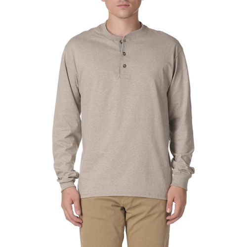 These men’s Henleys are made with a high-density stitch count, have double-needle stitching, and shoulder-to-shoulder taping for extra strong seams.