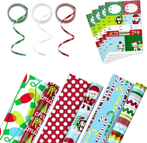 3 Rolls Hallmark Reversible Christmas Wrapping Paper Set with Ribbon and Gift Tag Stickers $19.99 – 3 Color Options – 120 total square feet!