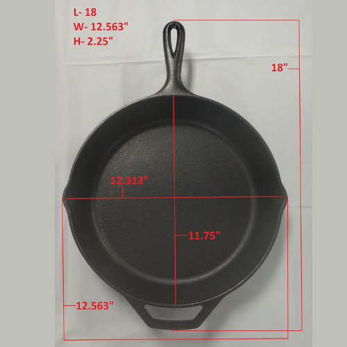 - 12 INCH CAST IRON SKILLET. It offers both elegance and versatility to your kitchen. Whether youâ€re learning to cook, or a seasoned expert, this pan is timeless. If well cared for, it can be passed down from one generation of chefs to the next. This skillet translates beautifully from the kitchen to the table as you make every meal a memory.