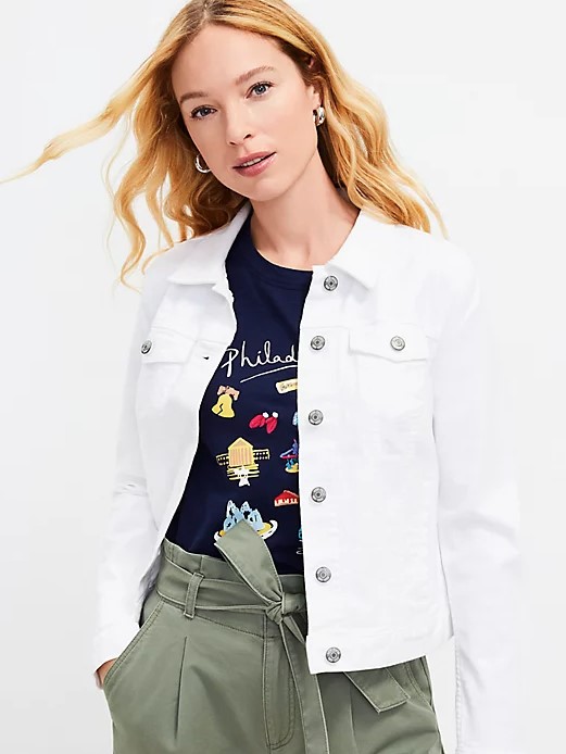 Denim Trucker Jacket in White – $79.99 (reg. $90)