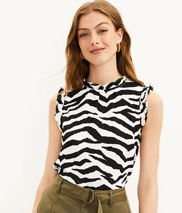 Petite Tiger Print Textured Ruffle Top $15.88 (reg. $49.50)