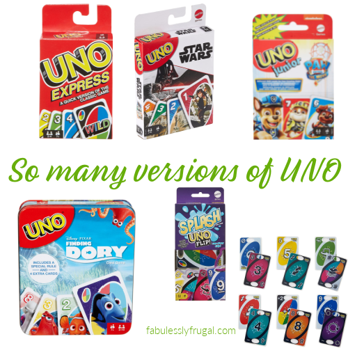 My family loves to play UNO. It’s an easy-to-learn, quick game and we’ve been playing it for years. I had no idea there are over 400 different versions! Here are a few we found with a quick Amazon search.