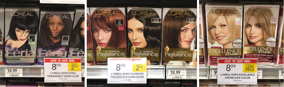L’Oreal Paris Excellence Creme Hair Color, or Excellence Age Perfect, Superior Preference, or Feria, $8.99