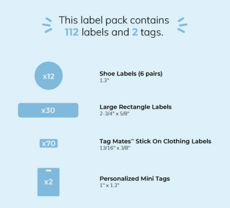 This bundle includes 112 waterproof labels and 2 tags to help your kids stay organized. It is the ONLY bundle that includes a large selection of our best-selling labels PLUS mini tags! This exclusive, limited-edition pack brings together our most popular designs from across all our collections, not offered together on any other combo.