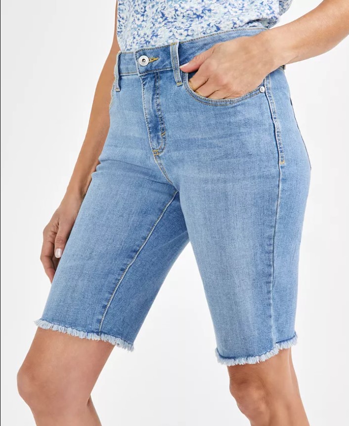 Women’s Mid-Rise Raw-Edge Bermuda Jean Shorts