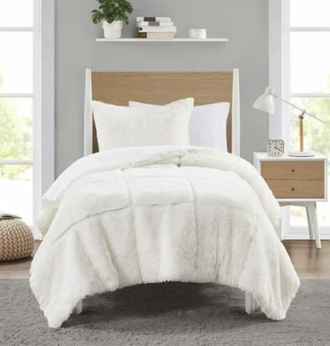 Get this Mainstays Shaggy Faux Fur 2 Piece Ivory Comforter Bed Set for only $15.98 (regularly $34.88)!