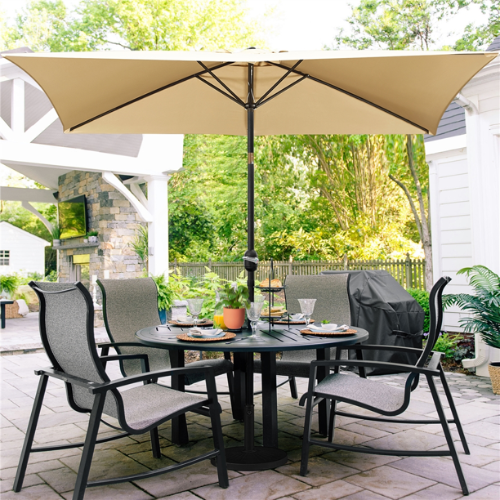 Bring life to your outdoor space for happy summer days! This Yaheetech 6.5×10 FT Outdoor Rectangle Patio Umbrella is made from polyester, the umbrella cloth is resistant to water and UV, and is durable. It has top ventilation system keeps air flowing, preventing the parasol to be blown down by the wind and effectively keeping the air below the canopy cool on scorch summer days. The canopy is designed into a tiltable type that you can adjust the angle by the push button, preventing the direct sunlight. Boasting stable support as well as a user-friendly control system, this patio parasol will add inviting atmosphere and functional addition to the patio, garden, deck or poolside. Right now you can snag this for just $44.98!  You may also check out this SmileMart 9 Foot Patio Umbrella & SmileMart 4 lbs Square Patio Umbrella Base Stand compatible as a complete set. Feel free to browse them out.