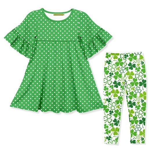 Green Dot Ruffle-Sleeve A-Line Dress & 4 Leaf Clover Leggings – $29.99 (reg. $55)