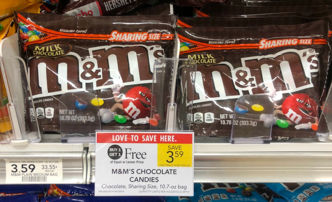 M&M’s Chocolate Candies or Peanut or Classic Mix, Sharing Size, 8.3 to 10.7 oz, BOGO $3.59 – $4.49