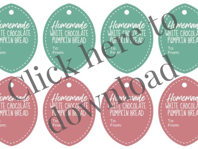 Want to add on Christmas gift tags to gift this to someone this holiday season? Go HERE to download printable gift tags designed for this pumpkin bread!