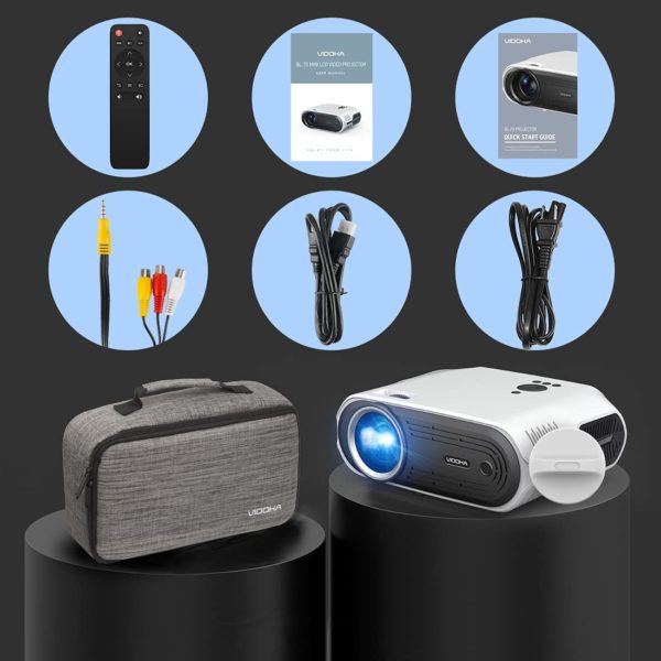 - Native 1080P & Enhanced Image- VIDOKA BL70 native 1080P Full HD portable projector is upgraded with a high brightness rating of 8000L and 10000:1 contrast ratio. It ensures over 30% brighter, more sharp, detailed image projection than other portable projector that claim to “support 1080p”. Moreover, the built-in 5 layer glass lens help produce richer color gradation and natural images
