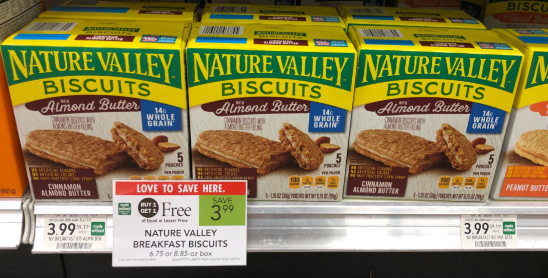 Head over to Publix and pick up a nice deal on Nature Valley Breakfast Biscuits. After sale and coupon, you can pick up a couple of boxes for only $1.75 each. With five pouches in each box, that’s only 35¢ per serving!