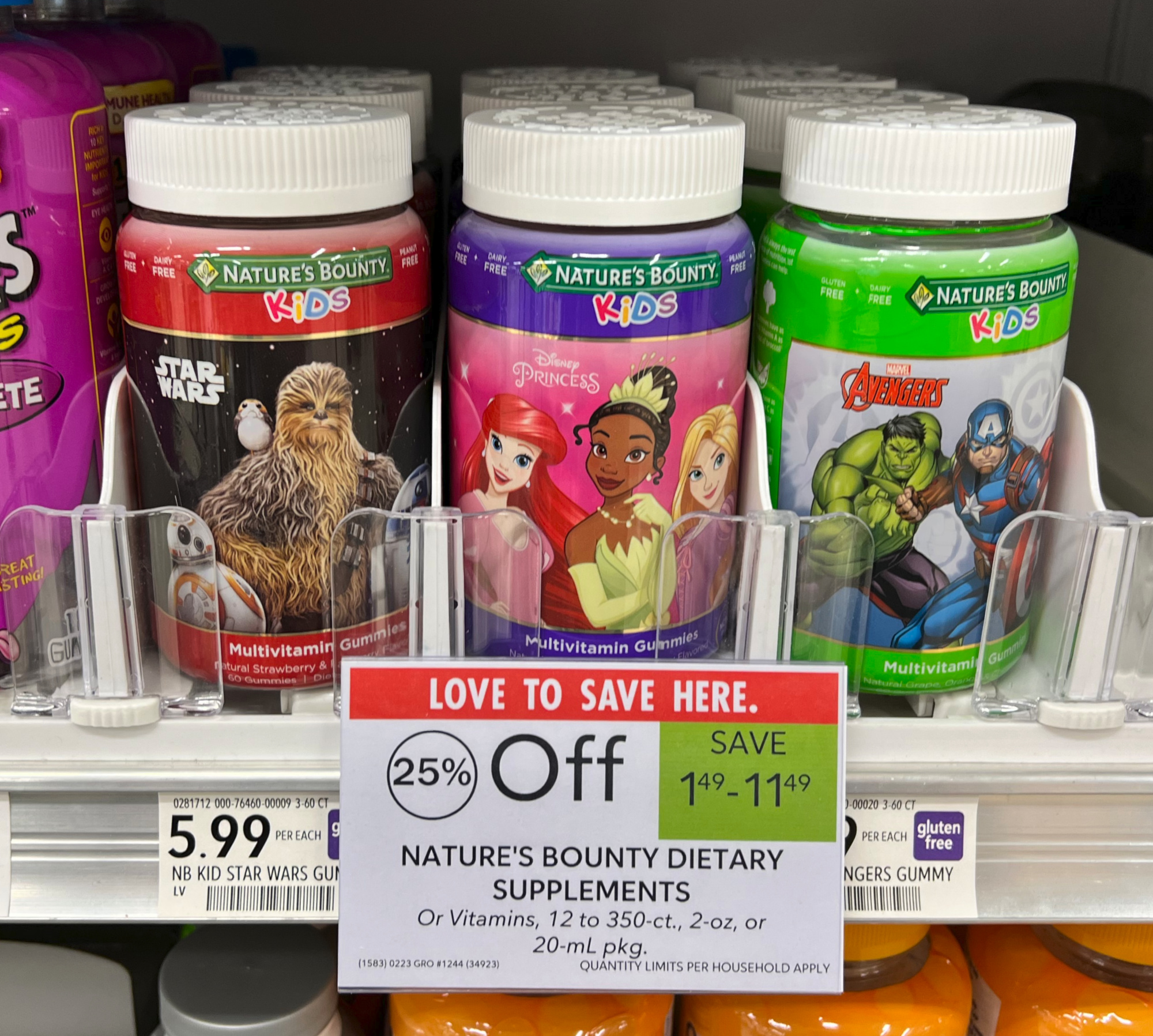 Nature’s Bounty Kids Vitamins 60 ct, (reg $5.99), 25% Off, $4.49