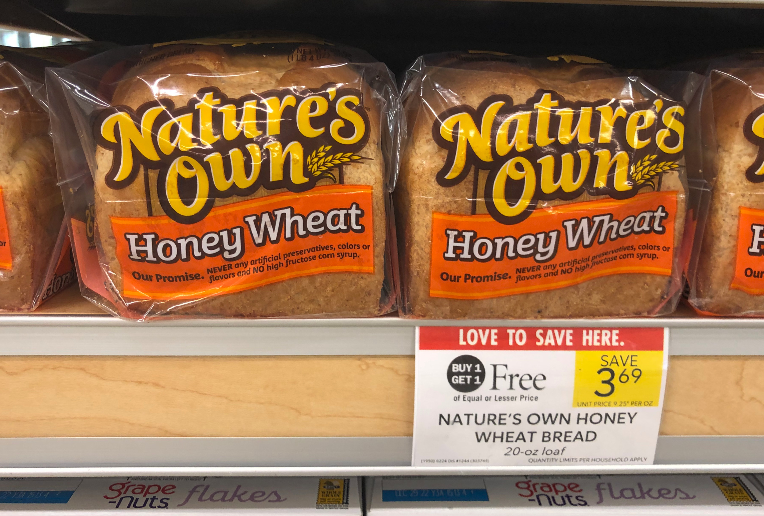 Nature’s Own Honey Wheat Bread, 20 oz loaf, BOGO $3.69