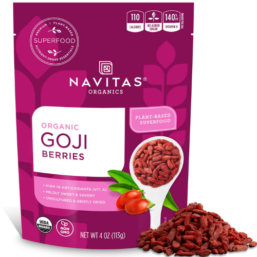 - An excellent source of essential minerals, Navitas Organics Goji Berries are also an antioxidant powerhouse — one serving contains 140% DV vitamin A.